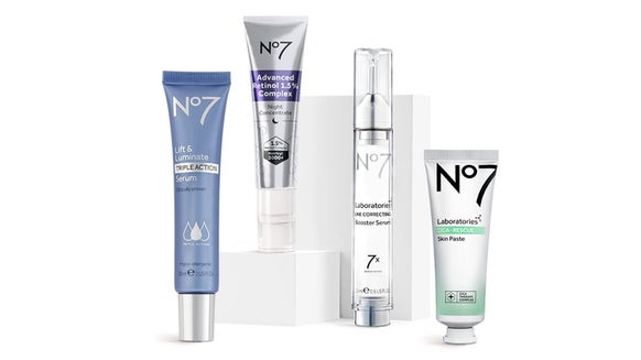 Cleanse and tone the skin with your favorite No7 cleanser and toner - Apply facial serum and eye serum