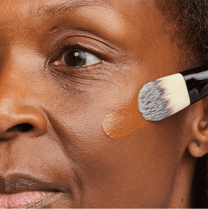Step 5: Apply the foundation for oily skin with a foundation brush or sponge and blend down the neck for a seamless finish.